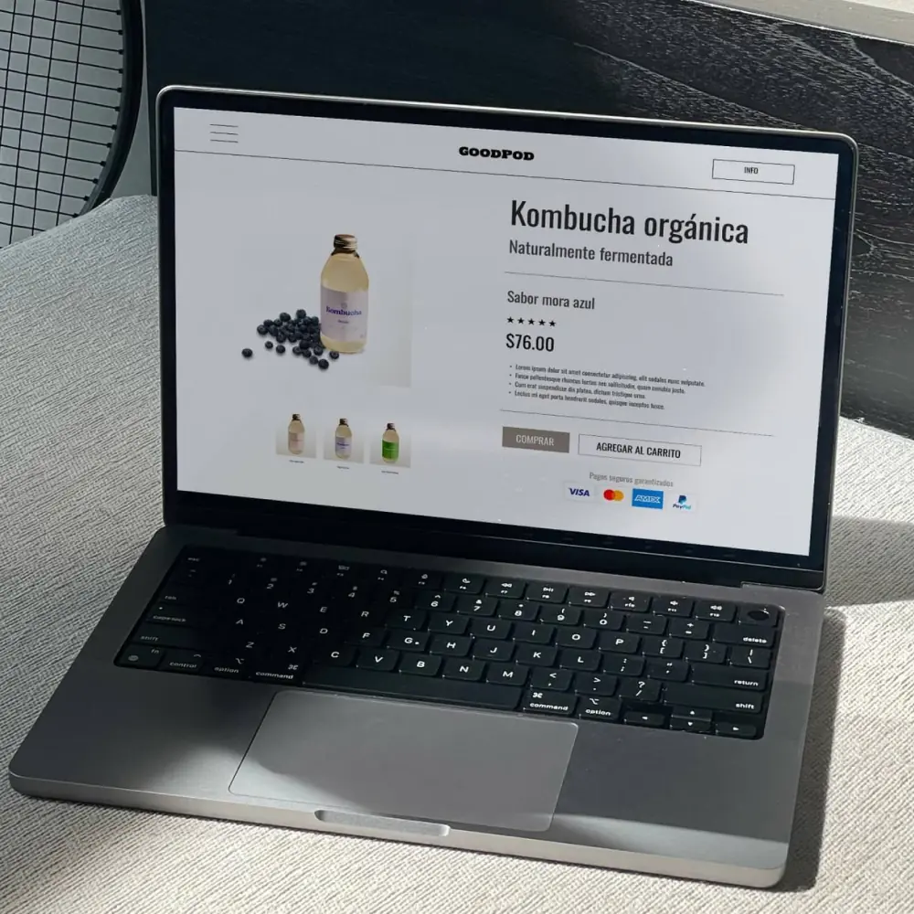 Sitio Web completamente integrado para comercio electrónico, vende a todo el mundo a cualquier hora, recibe pagos a través de transacciones seguras.